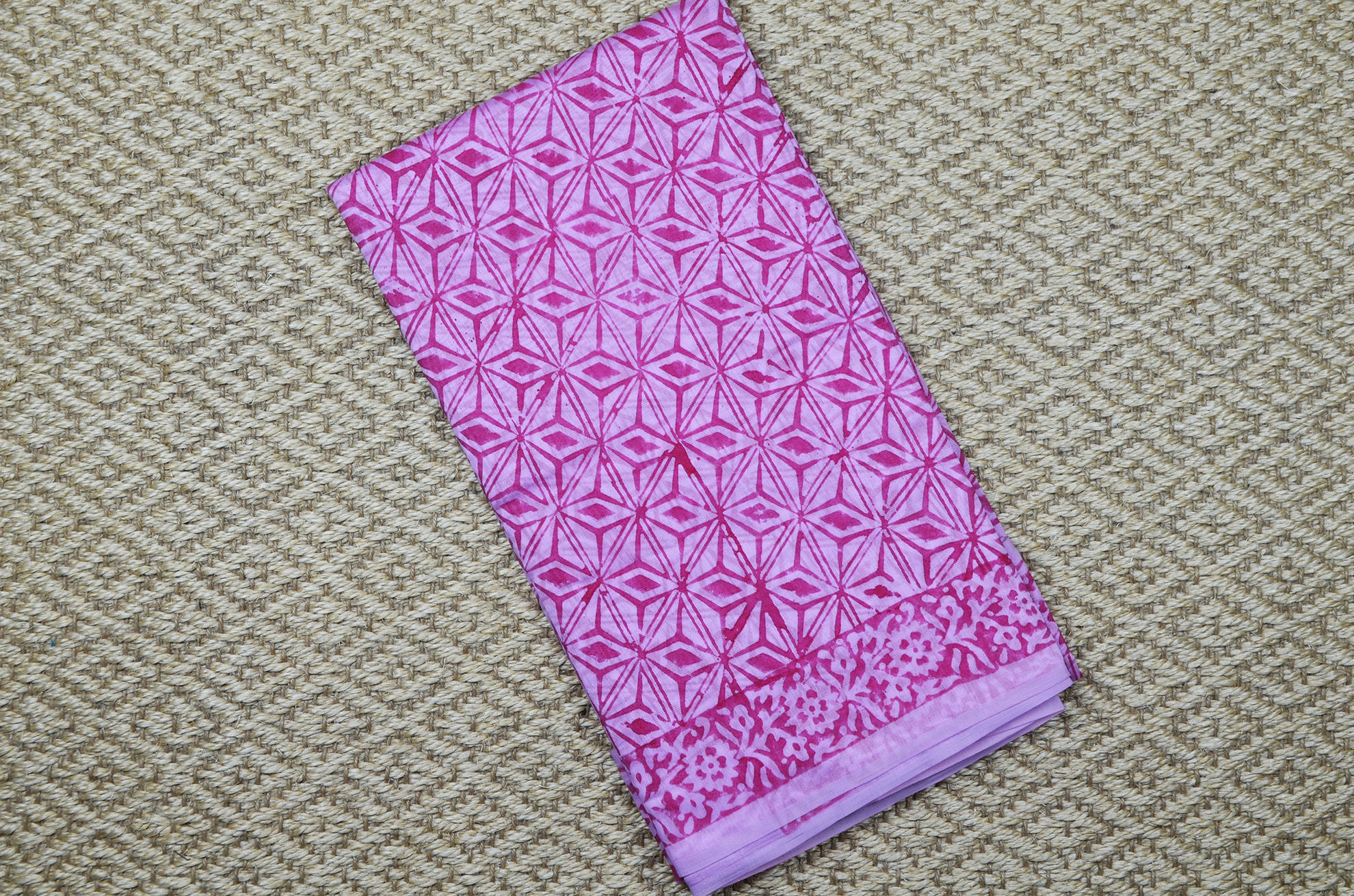 Baby Pink Handblock Print Maheshwari Silk Saree