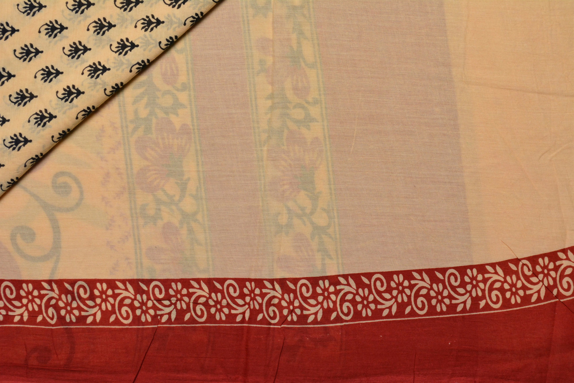 Beige, Black and Red bagru printed malmal cotton saree with blouse