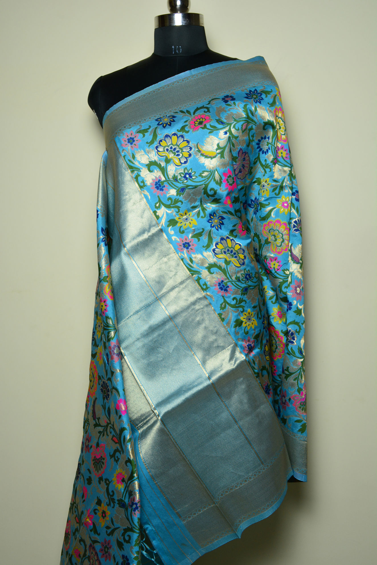 Blue Semi Katan Banarasi Silk Dupatta with Heavy Zari Work
