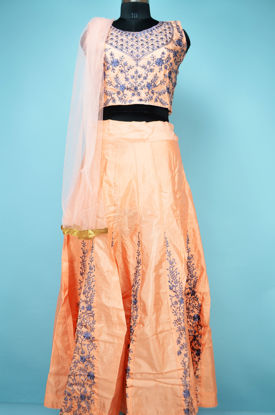 Peach with Embroidery Work 3 Piece Silk Crop Top Set