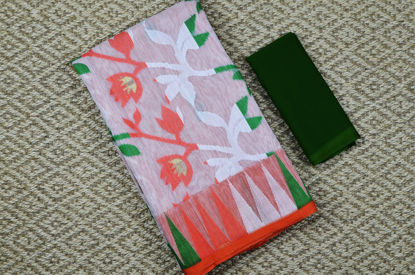 White and orange half and half jamdani soft handloom cotton saree