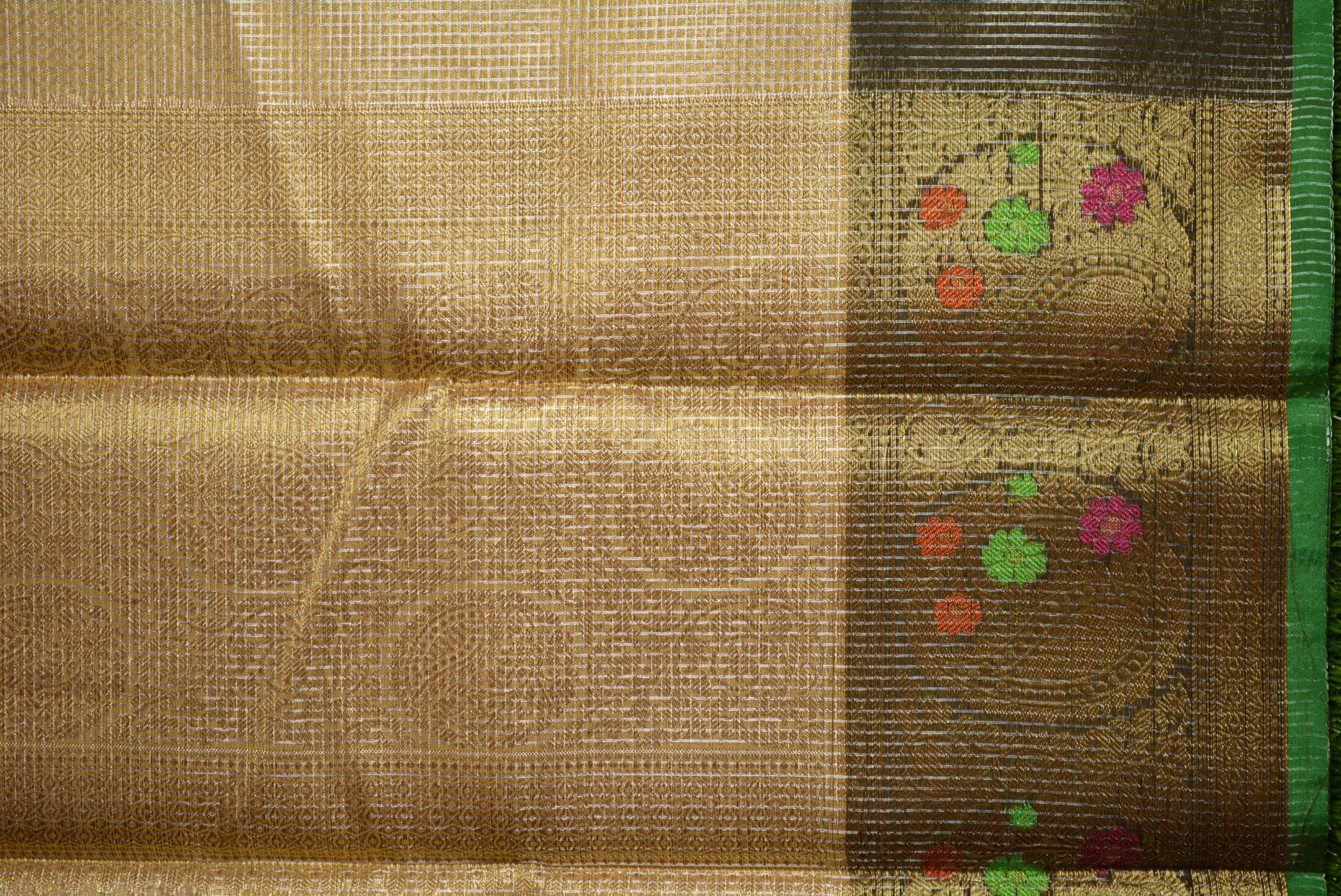 Nude and Green Banarasi Kota Tissue Silk Saree