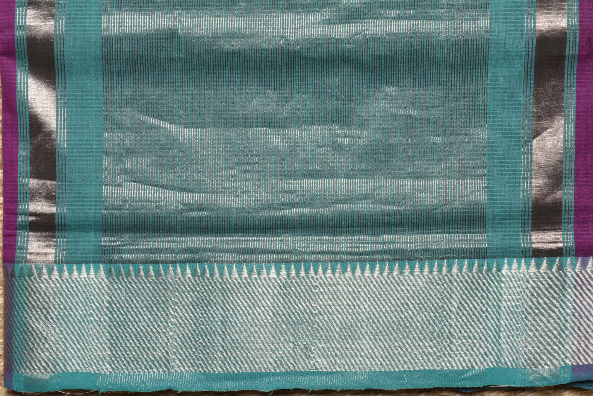 Plain Purple and Sea Green mangalagiri handloom cotton saree with silver zari border