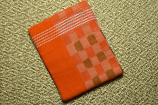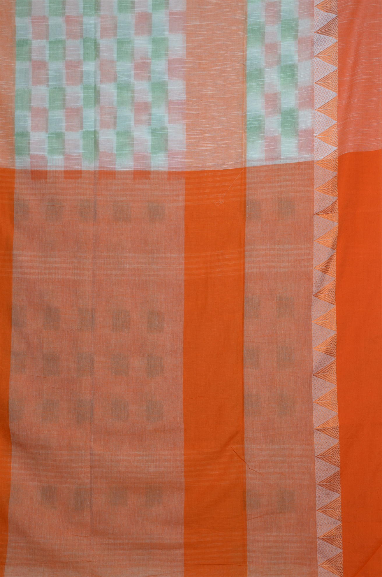 White and orange soft naksha handloom cotton saree with stripes and orange blouse
